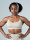 Stay versatile and stylish with the Seamless Knitted Cross-Back Bra Beige - your go-to sports bra for every workout.