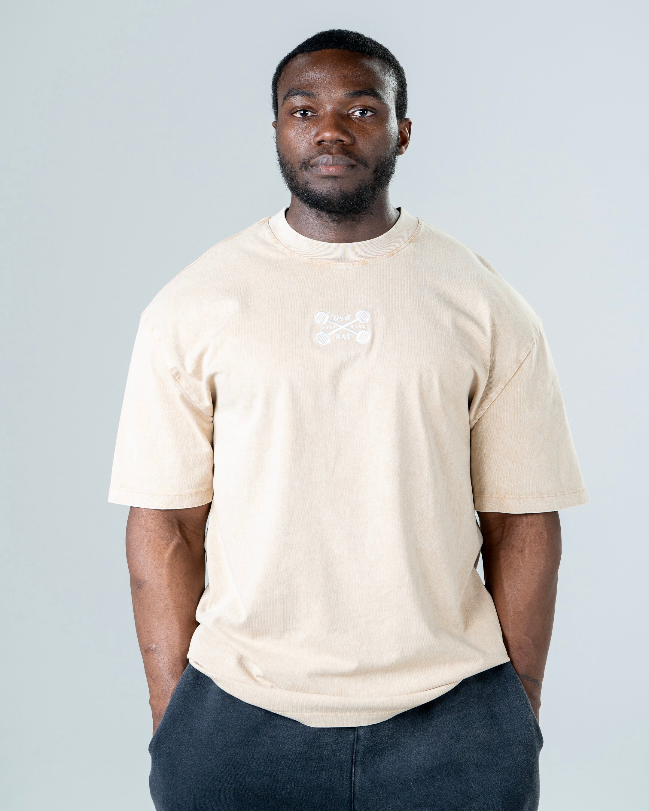 From serious sets to street-ready looks, this oversized tee is made to move with you. Its relaxed fit, dropped shoulders, and vintage khaki tone give you effortless confidence whether you're at the gym or just out owning the day.
