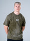 Men’s Army Green Oversized Heavyweight Vintage Gym Rat Brothers T-Shirt - Washed Cotton with Embroidered Logo